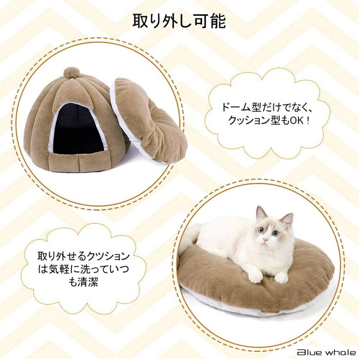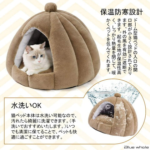 【機能性】もぐりこむ猫の習性で、ドーム型猫ベッドの入口の開口部が小さく設計されております、外の風を有効に遮断できます。