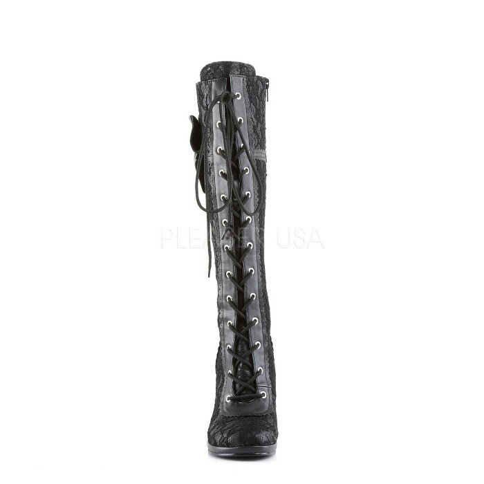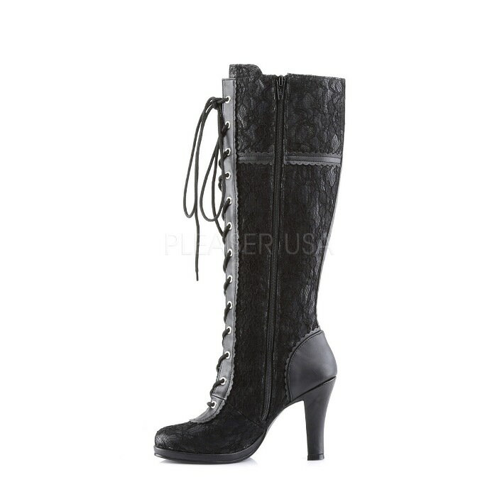 demonia デモニア ロングブーツ 9.5 cm ヒール 黒 ブラック レース リボン 編み上げ レースアップ ジッパー 小さいサイズ 大きいサイズ ハイヒール パンク V系 ゴスロリ 原宿系 ロリータ ファッション コスプレ 衣装 靴 レディース メンズ GLAM-240 GLAM240/B/PU 取寄