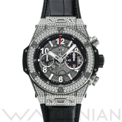 【39ショップ限定P2倍&最大50,000円OFFクーポン配布中!】【中古】 ウブロ HUBLOT ビッグバン ウニコ チタニウム パヴェ 411.NX.1170.RX.1704 マットブラック/スケルトン メンズ 腕時計