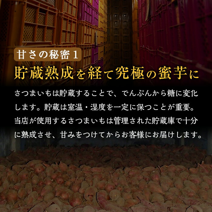 保存方法 冷凍 製造者 加治木産業株式会社/甘いも販売所 〒899-5201鹿児島県姶良市加治木町西別府2427TEL:0995-73-6939 商品説明 南九州産のさつまいも(安納芋、紅はるか)にこだわり、専用の貯蔵庫で90日以上熟成させたものだけを、低温でじっくりと焼き上げております。