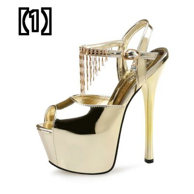 キャバ ヒール レディース ストラップ ピンヒール おしゃれ 夏 16cm タッセル セクシー ゴールド シルバー ハイヒール オープントゥ