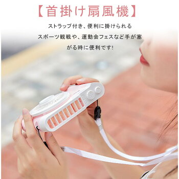 首掛け扇風機 携帯扇風機 卓上扇風機 ミニ扇風機 ハンディファン 三段階調節 小型軽量 USB充電 熱中症対策 ピンク