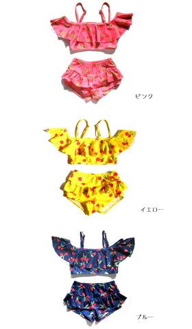 チェリーがたくさん元気いっぱいに 遊べちゃうセパレートタイプの水着 ふりふりがきわだつキャミソールタイプ♪