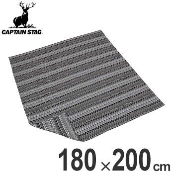 レジャーシート ラグ 約180×200cm ジオメトリック柄 キャプテンスタッグ ブラックラベル ( マルチラグ 敷物 アウトドア 布 テント内 インテリア おしゃれ ブラック モノクロ マルチカバー 大きい )【39ショップ】