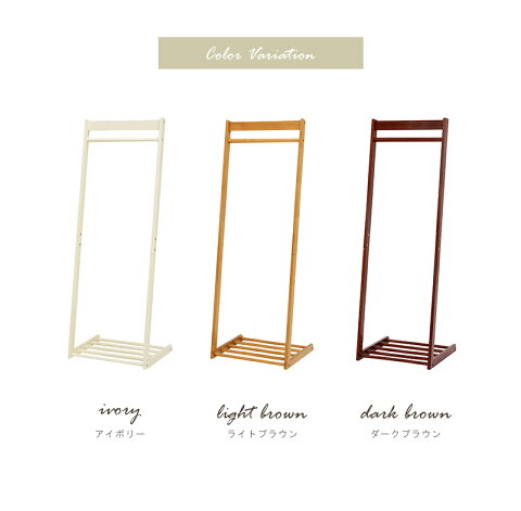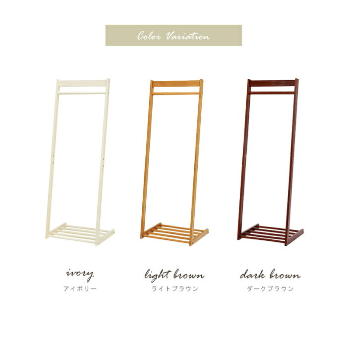 商品名 《萩原》ハンガーラック 幅50 サイズ (約)幅50×奥行45×高さ150cm 素材 主材:ラバーウッド カラー アイボリー(IV)/ライトブラウン(LBR)/ダークブラウン(DBR) 商品様式 組立式 備考 シンプルで場所をとらないハンガーラック。