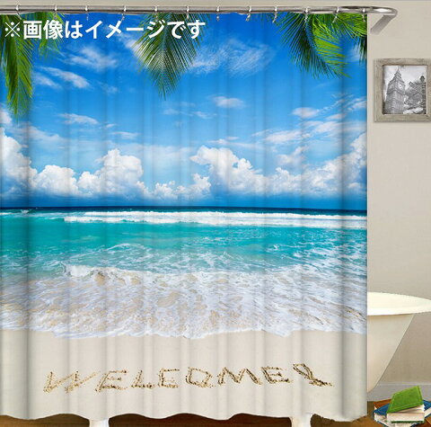 【スーパーSALE★全品ポイント19倍!(エントリー要)】シャワーカーテン 180cm おしゃれ リングランナー付き 仕切り カーテン 浴室 インテリア 保温 防水 お風呂 バス 海 リゾート 浜辺 ビーチ SC-10