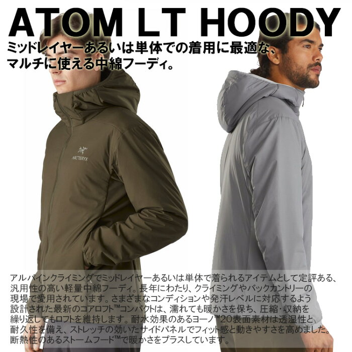 [s1001657] 商品名:アークテリクス ARC'TERYX ATOM LT HOODY MEN'S アトム LT フーディ 軽量 中綿ブルゾン メンズ 24108商品の概要:アルパインクライミングでミッドレイヤーあるいは単体で着られるアイテムとして定評のある、汎用性の高い軽量中綿フーディ。