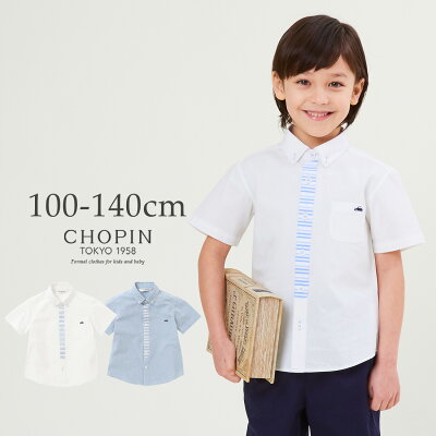 【セール50%OFF】子供服 男の子 トップス ボーダーボタンダウンシャツ 100 110 120 130 140cm(8233-5403)CHOPIN/ショパン[子ども服 キッズ お出かけ カジュアル 半袖 シャツ ハーフパンツ 半ズボン 春 夏 おしゃれ サックス ホワイト 白 水色 羽織り]