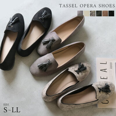 ★最大1000円OFFクーポン★パンプス フラット ぺたんこ タッセル オペラシューズ ローファー スクエアトゥ レディース 低反発 歩きやすい ブラック ベージュ ブラウン パイソン グレー 秋冬 パイピング スムース アニマル柄 黒 スエード