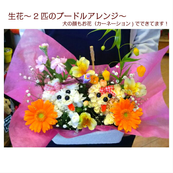 生花 2匹のプードル アレンジ プレゼント 敬老の日 犬の大好きな方への贈り物に 誕生日 プレゼント 結婚記念日還暦 米寿 喜寿 お供え お悔やみ ペット 供養 敬老の日 お花でできた犬のアレンジ〜2匹のプードルアレンジ〜 お誕生日や記念日に大好評♪