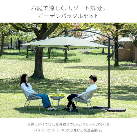 ベース6個セット ガーデンパラソル 大型 300cm 角度調節 ガーデンパラソルセット 3m ハンギングパラソル パラソル ベースセット ベース付き ガーデンファニチャー 日よけ 日除け UVカット 折り畳み チルト機能 自立 土台 庭 ガーデニング おしゃれ