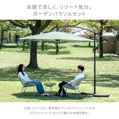 ベース6個セット ガーデンパラソル 大型 300cm 角度調節 ガーデンパラソルセット 3m ハンギングパラソル パラソル ベースセット ベース付き ガーデンファニチャー 日よけ 日除け UVカット 折り畳み チルト機能 自立 土台 庭 ガーデニング